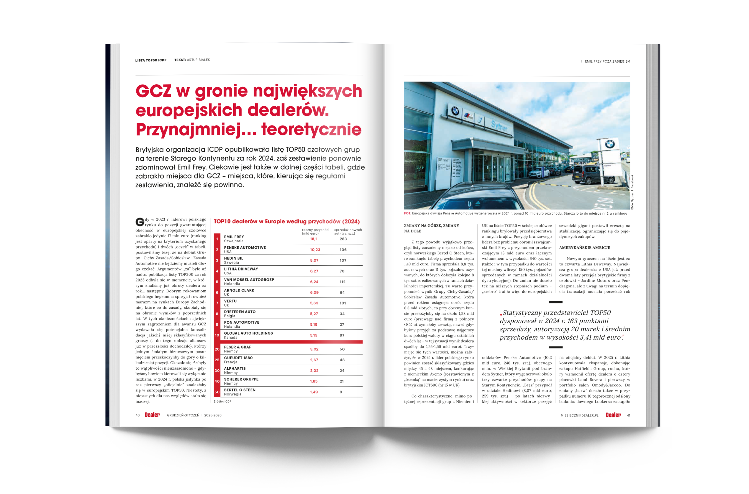 💶PRZYCHODOWE TOP50🏆 STABILNIE NA GÓRZE, CIEKAWIE NA DOLE ☕„DEALER”, NR GRUDZIEŃ-STYCZEŃ 2025-2026📑 📊W grudniowym numerze prezentujemy kolejną edycję rankingu 50 największych grup dealerskich pod względem generowanego przychodu. W 2024 r. branża obróciła ponad 120 mld zł (+13,7 proc. r/r), zaś lider zestawienia, Grupa Cichy-Zasada/Sobiesław Zasada Automotive, przekroczył 6,7 mld. Ale cieszyć mogą się nie tylko […]