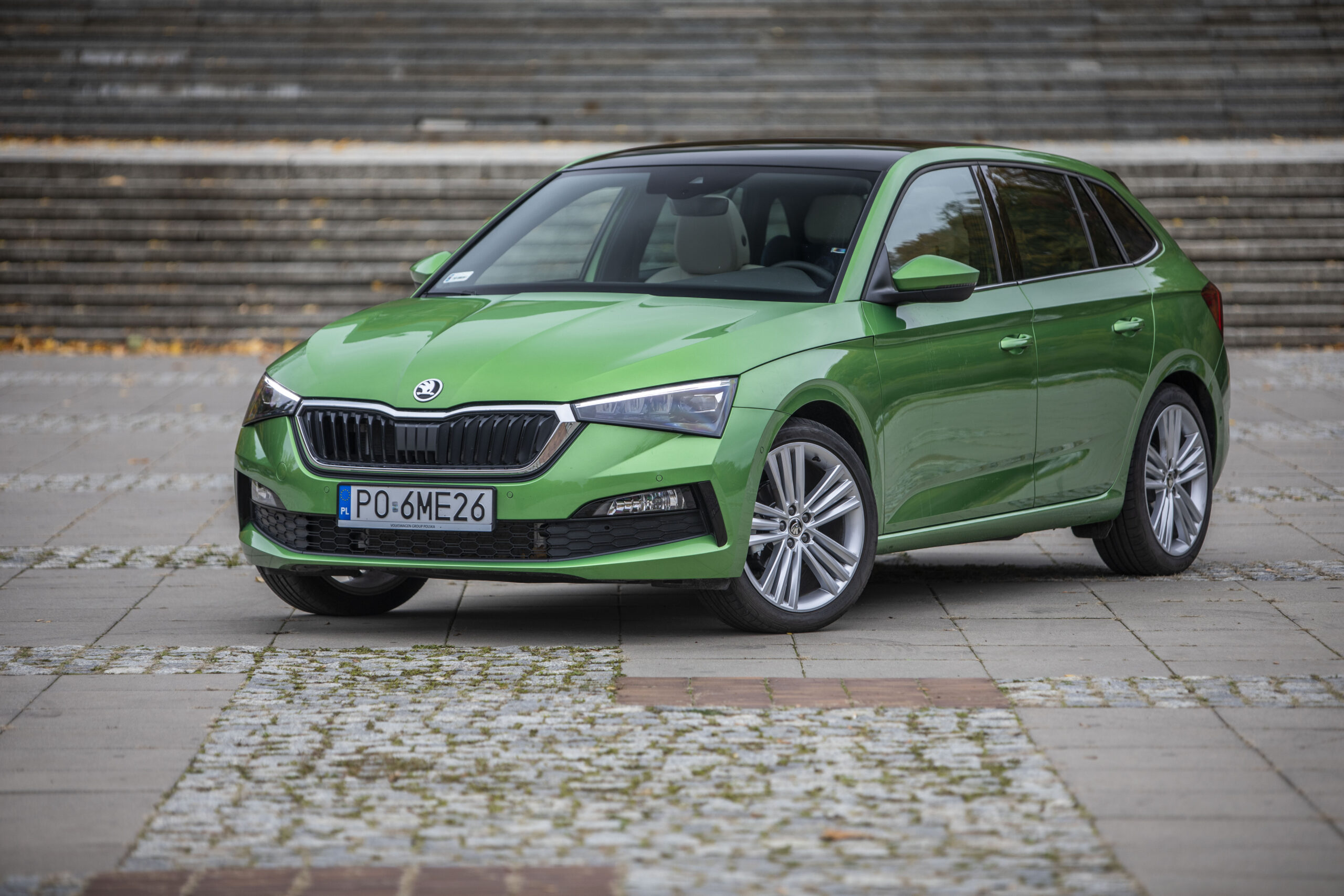 Wygląd auta poprawiają też chromowane listwy przy oknach bocznych. W środku – jak to w Skodzie – panuje porządek. Jest też jednak nowocześnie. Wzrok od razu przyciągają – dostępne za dopłatą – dwa duże wyświetlacze – wirtualny kokpit i centralny ekran o przekątnej 9 cali. W tym kontekście wielofunkcyjna, skórzana kierownica nikogo już nie powinna dziwić. Warto jednak mieć świadomość, że testowaliśmy Scalę w najwyższym wariancie wyposażenia Style z wieloma opcjami dodatkowymi, wśród których – poza już wymienionymi – można wskazać m.in. 18-calowe felgi, aktywny tempomat, obniżone zawieszenie z wyborem trybu jazdy czy duży dach panoramiczny.